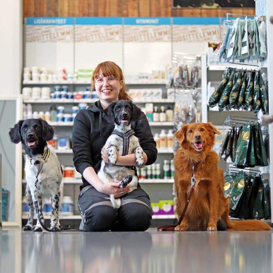 Konalan myymälävastaava Marjo huolehtii myös monin tavoin koko ketjun arjen rullaamisesta. Hän on kiinnostunut erityisesti raakaruokinnasta sekä ihon ja turkin hyvinvoinnista.