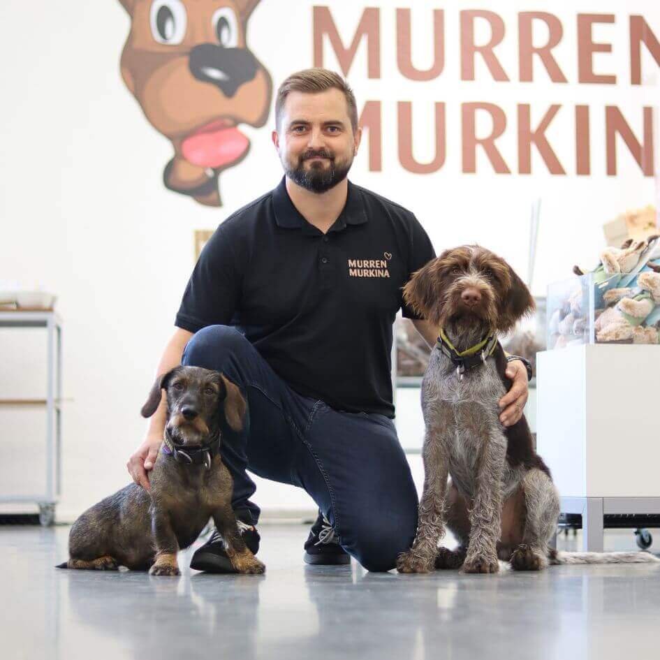 Tuomas astui toimitusjohtajan saappaisiin vuonna 2018. Vakuutusalalta eläintarvikealalle loikanneen Tuomaksen kiinnostuksen kohteena on erityisesti metsästys yhdessä mäyräkoira Markun ja saksanseisoja Pentin kanssa.