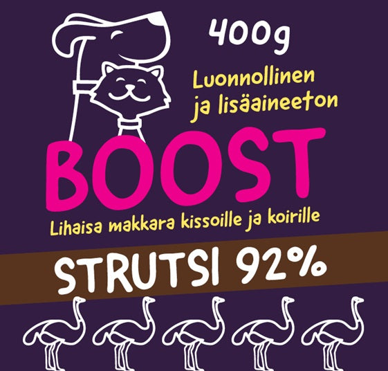BOOST Lihaista strutsimakkara 400 g