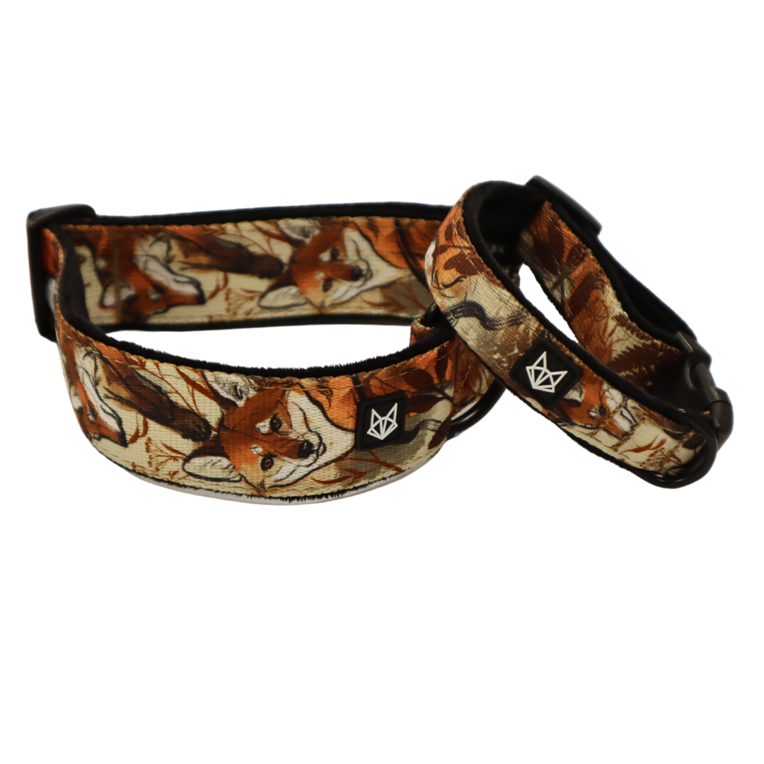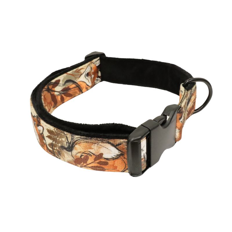 Pehmustettu koiran kaulapanta suloisella kettukuosilla. Mattamustat metalliosat ja musta karvapehmuste tekevät tästä kaulapannasta sekä tyylikkään että mukavan. Se sopii täydellisesti yhteiseen arkeen ja jokapäiväiseen käyttöön.