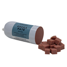 Paté koostumuksen ansiosta makkara on helppo kuutioida sopivan kokoisiksi palkkanameiksi. Kiinteät palat pysyvät hyvin koossa eivätkä lähde murenemaan taskussa tai namipussissa. Treeneistä ylijäävät makupalat voidaan myös pakastaa. Pakastus ei vaikuta makkaran koostumukseen, makuun tai tuoksuun!