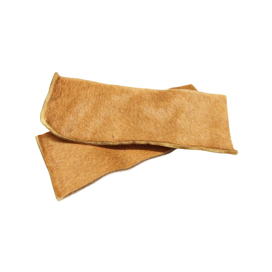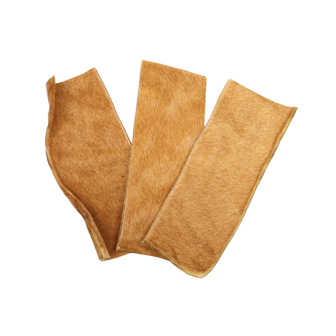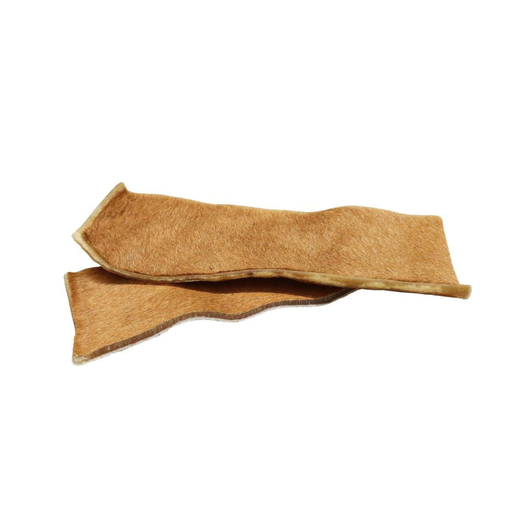 Valmistusprosessi on täysin luonnollinen – ilman kemikaaleja. Koko nahka kuivataan hitaasti ilmassa, jolloin sen ravintoaineet, rakenne ja maku säilyvät. Lopputuloksena syntyy purutuote, joka on vähemmän tahmea, kestävämpi ja täynnä luonnollisia ominaisuuksia. Karvaiset lastut maistuvat koirille alkuihmettelyn jälkeen usein paremmin kuin tavalliset puruluut. Karvassa on paljon suolistolle hyviä kuituja.