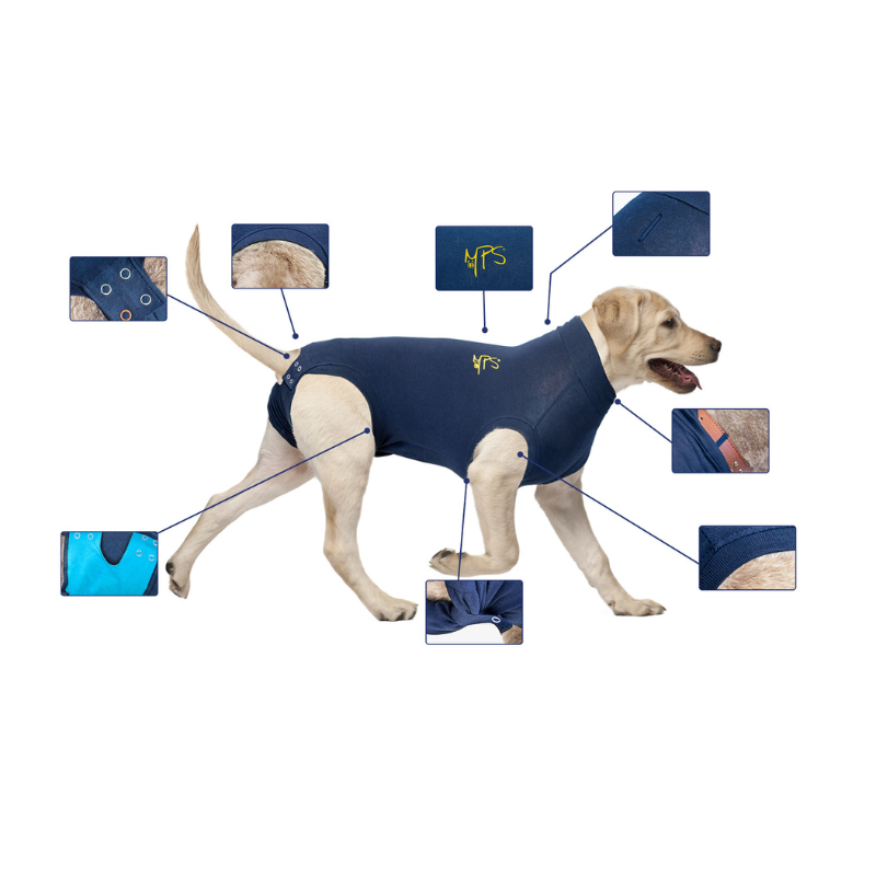 Medical Pet Shirt toipilaspaidat on suunniteltu siten, että ne istuvat anatomisesti oikein. Joustavan materiaalin ansiosta Medical Pet Shirt -Haavapuku antaa lemmikille täyden vapauden liikkua ja silti istuu napakasti paikallaan helpottaen leikkauksesta toipumista. Toipilaspaita voidaan jättää päälle myös ulkoilun ajaksi kunhan takanepparit jätetään auki tarpeiden tekoa varten. Medical Pet Shirt -toipilaspaidan pukeminen ja riisuminen on helppoa, koska nepparikiinnitys on selkäpuolella.