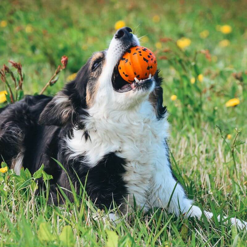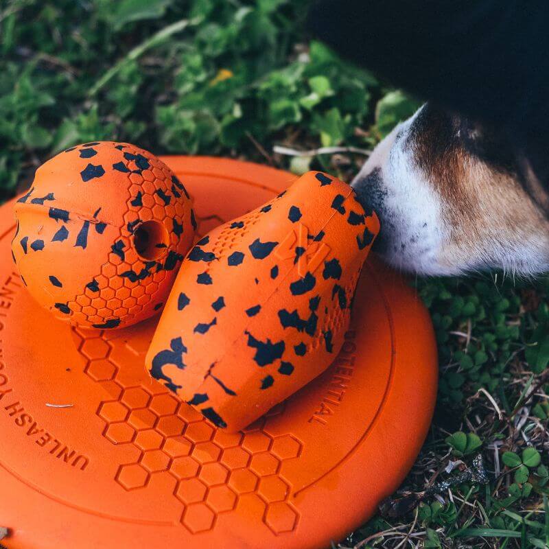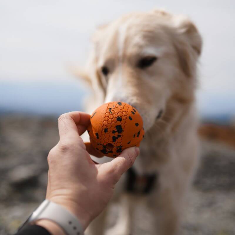 Kestävä ja pomppiva koiran pallo on suunniteltu aktiiviseen leikkiin. Pallo on valmistettu luonnonkumista ja bambukuidusta, jotka ovat myrkyttömiä ja turvallisia materiaaleja. Lelu on suunniteltu kestämään voimakkaita puraisuja, ollen silti hellävarainen koiran hampaille ja ikenille. Kuvioitu pinta takaa tukevan otteen sekä koiralle että heittäjälle. Pallossa on reikä, johon voi lisätä köyden vetoleikkejä varten.