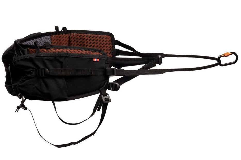 Vyön hihnakiinnitys on irrotettava, joten vyötä voidaan käyttää sekä koiran kanssa että ilman koiraa. Koiran hihnan saa kiinnitettyä turvalliseen screw-lock karabiiniin. Lukko liukuu koiran liikkeitä mukaillen, joka helpottaa tasapainon säilyttämistä, kun vyöhön kohdistuva veto tulee aina tasaisesti molemmille puolille.