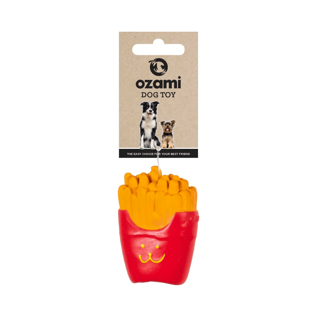 Maistuisiko ranskalaiset? Herkullisen näköinen vinkulelu koiralle kaikenlaisiin leikkeihin. Vinkuva lateksilelu on yksi legendaarisimmista koirien leluista. Se soveltuu mainiosti kaikenlaiseen leikkiin sekä innostavaksi vireystilaa nostavaksi palkkausleluksi vauhdikkaissa harrastuslajeissa.