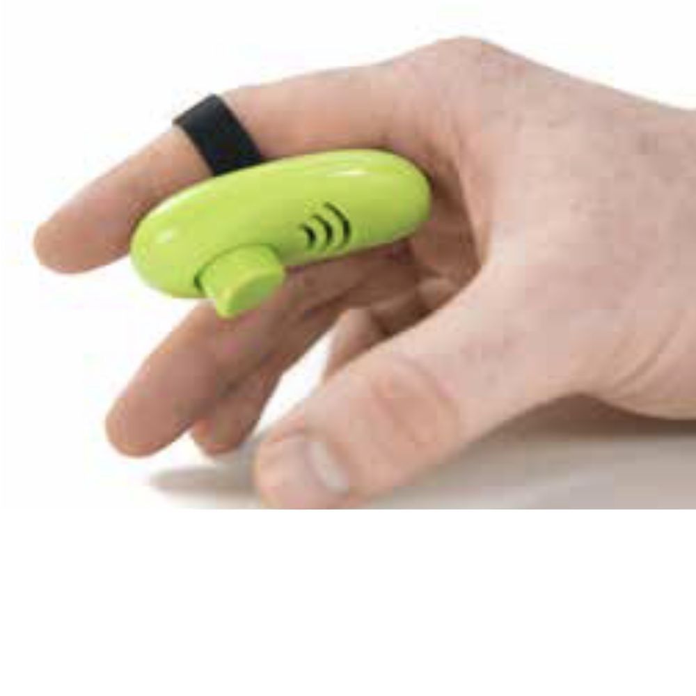 Laadukas naksutin, pysyy hyvin kädessä silikonisen sormipidikkeen ja muotoillun takaosan ansiosta.